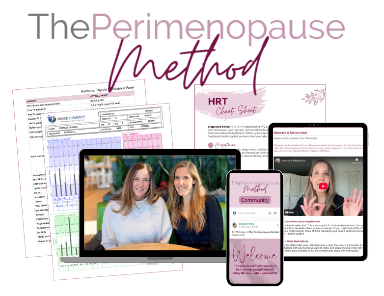A 12-week program for health-conscious, high-achieving women 40+ dealing with fatigue, mood changes, poor sleep, stubborn weight – and want answers. The Perimenopause Method uses specialized testing (no guessing) to uncover what’s actually driving your symptoms – and builds a clear, personalized plan around your life. Real answers. Real support. No noise.